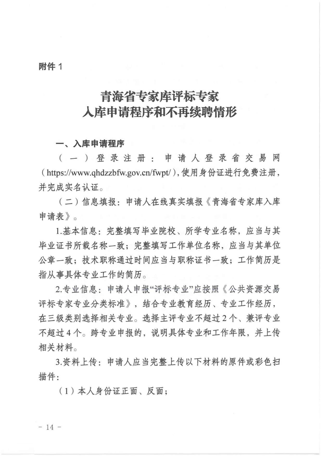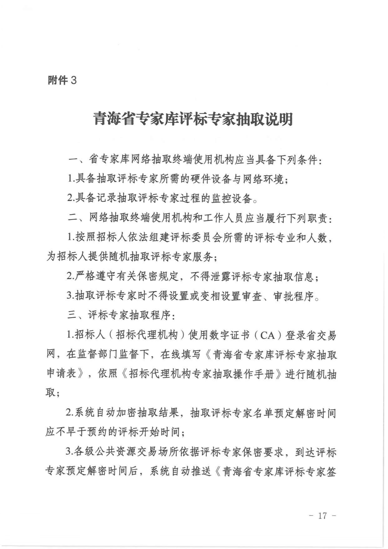 关于印发青海省评标专家和综合评标专家库管理办法的通知