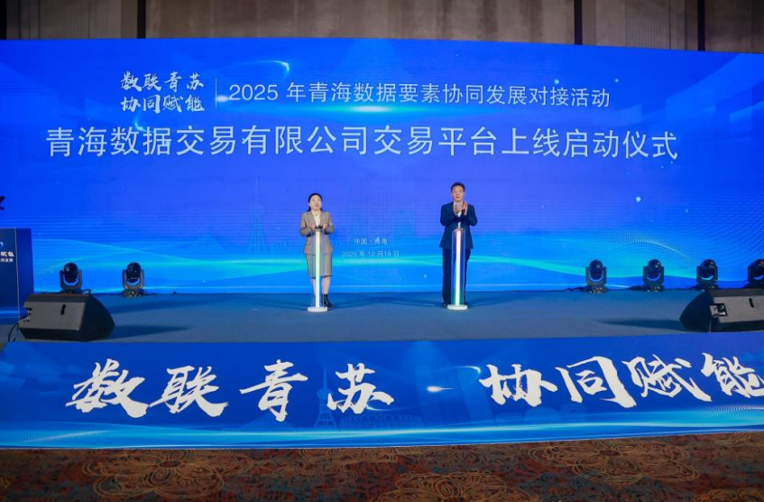 12月19日,“数联青苏 协同赋能”2025年青海数据要素协同发展对接活动在西宁市成功举办。省数据局局长靳力、省国资委副主任张海满、省国投公司董事长李兴财、青数集团董事长严得春共同为青海数据交易有限公司揭牌,青海数据交易平台同步上线,这标志着我省数据要素市场化配置改革正式迈入专业化、规范化发展新阶段。